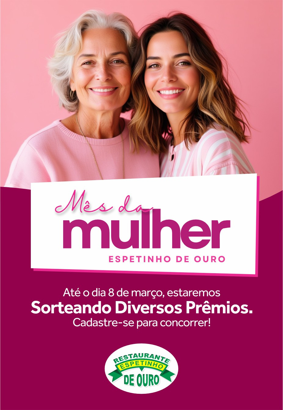 O Restaurante Espetinho de Ouro, em parceria com o Zoom Estúdio Fotográfico e a Virtuosa Estética, estão sorteando prêmios entre os clientes que nos visitarem nosso restaurante até o dia 08 de março. Os prêmios serão: